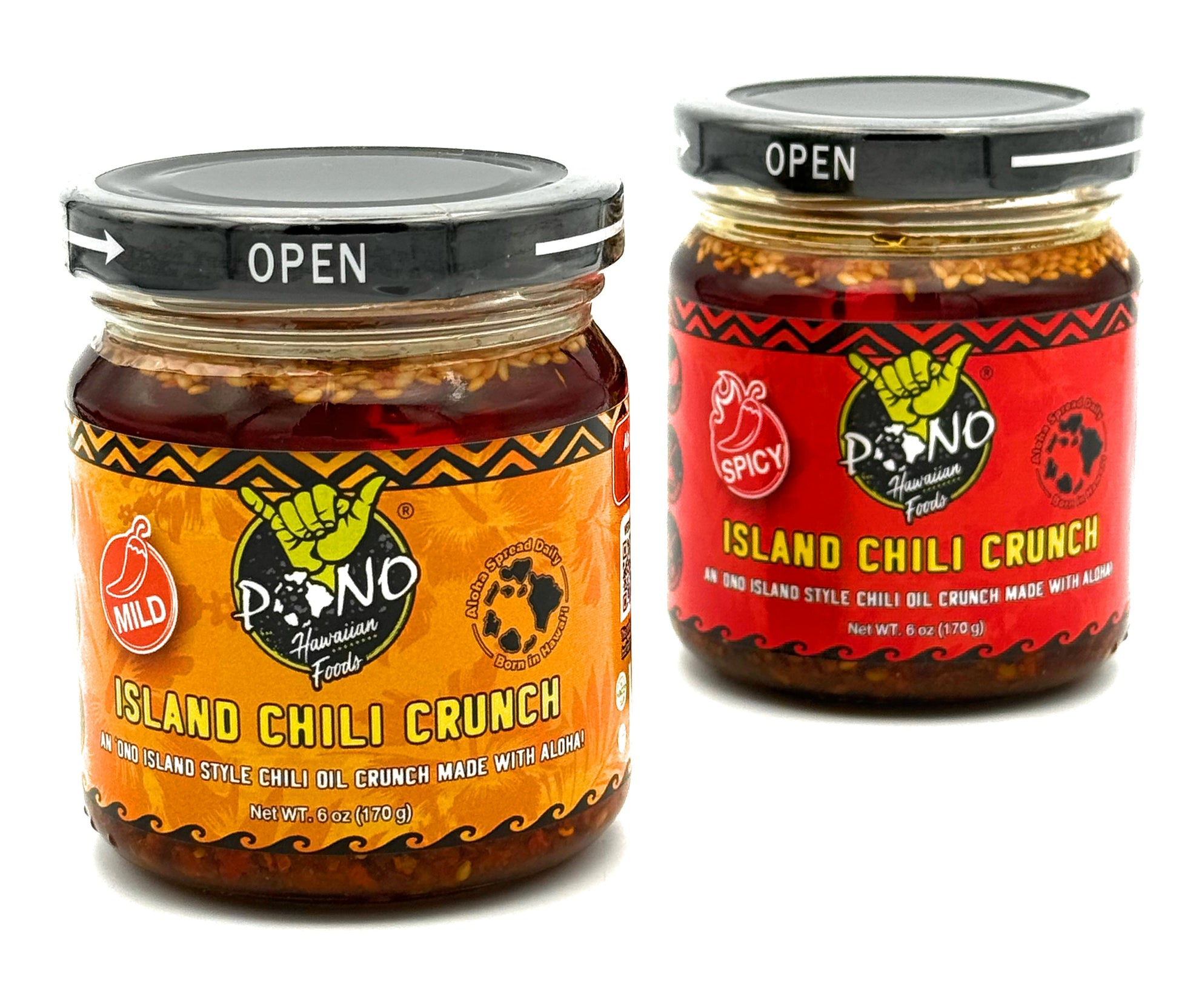 Get our new Island Chili Crunch TWO PACK! Both of the UMAMI blast chili crunch in both spicy and mild. A great way to feed your island style cravings! Our chili crunch is made with premium ingredients and is Plant Based, No Preservatives, Non GMO and made with heart healthy Rice Bran Oil! You will love our Chili Crunch. Every. Last. Bite!
