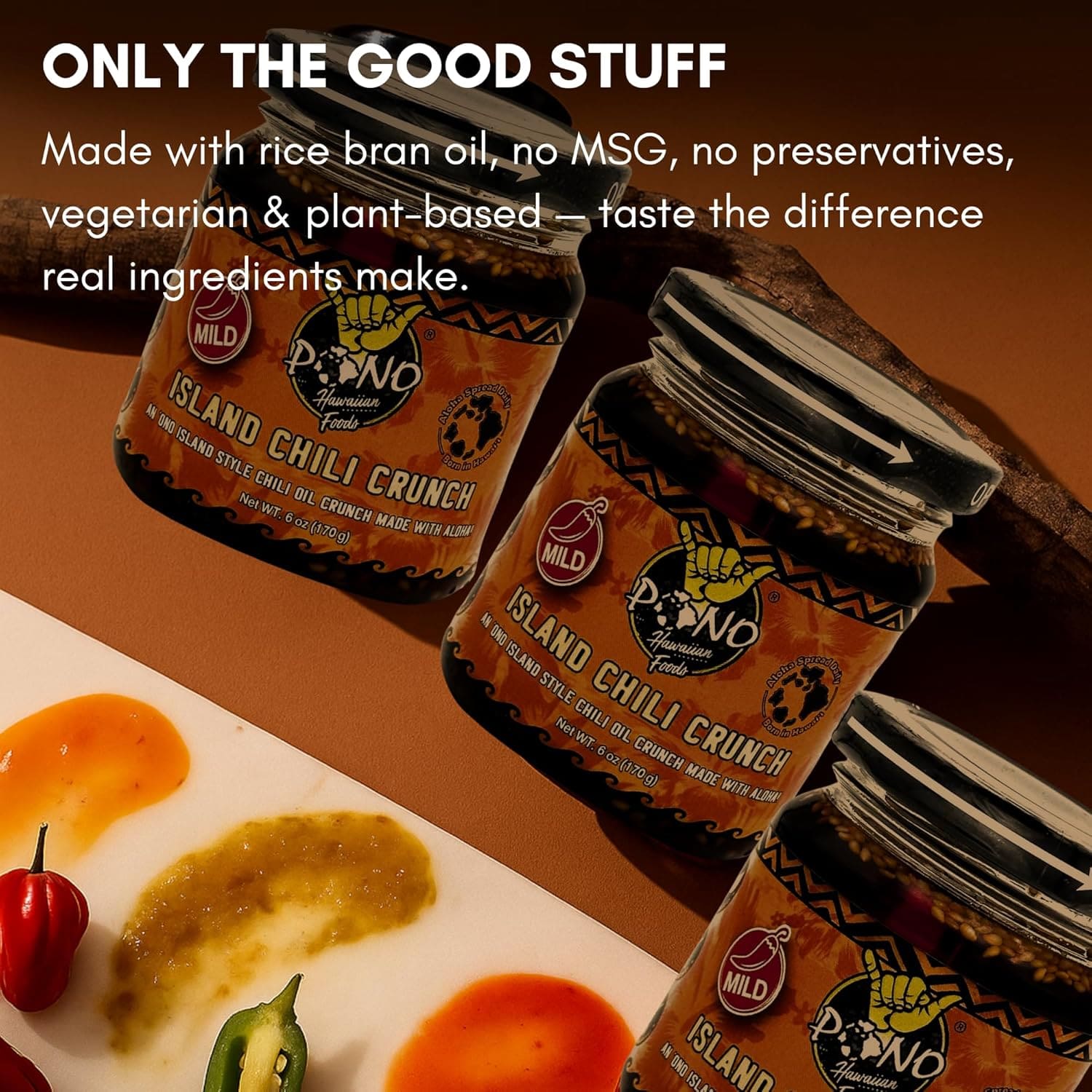 Pono Hawaiian Island Chili Crunch – 6oz – Umami, Garlic, Shallots, Sesame, Chili Peppers